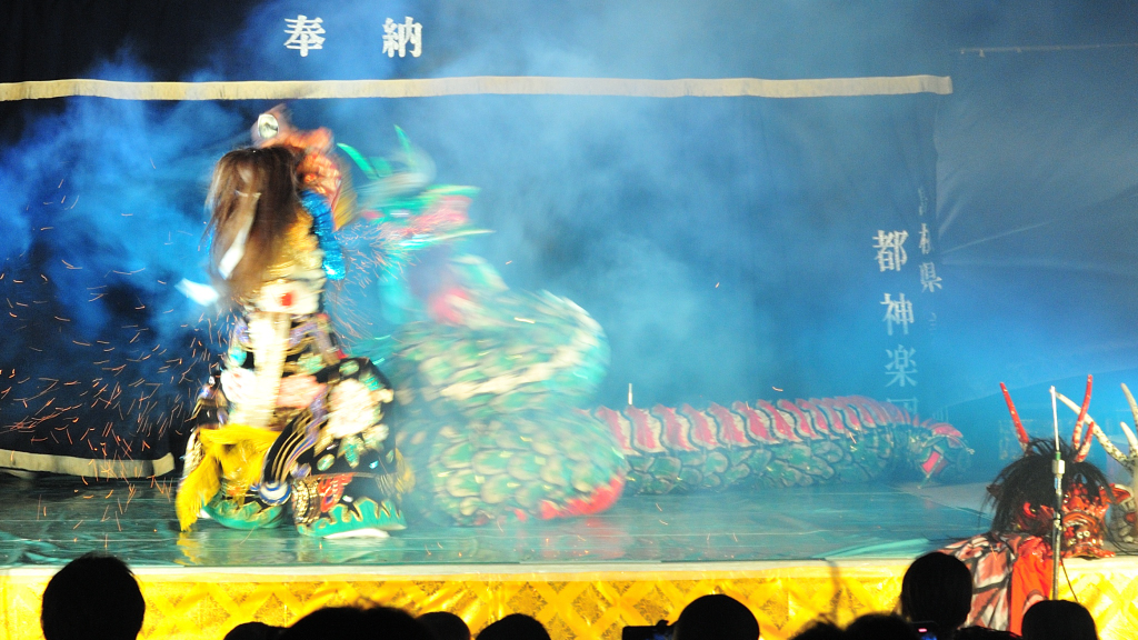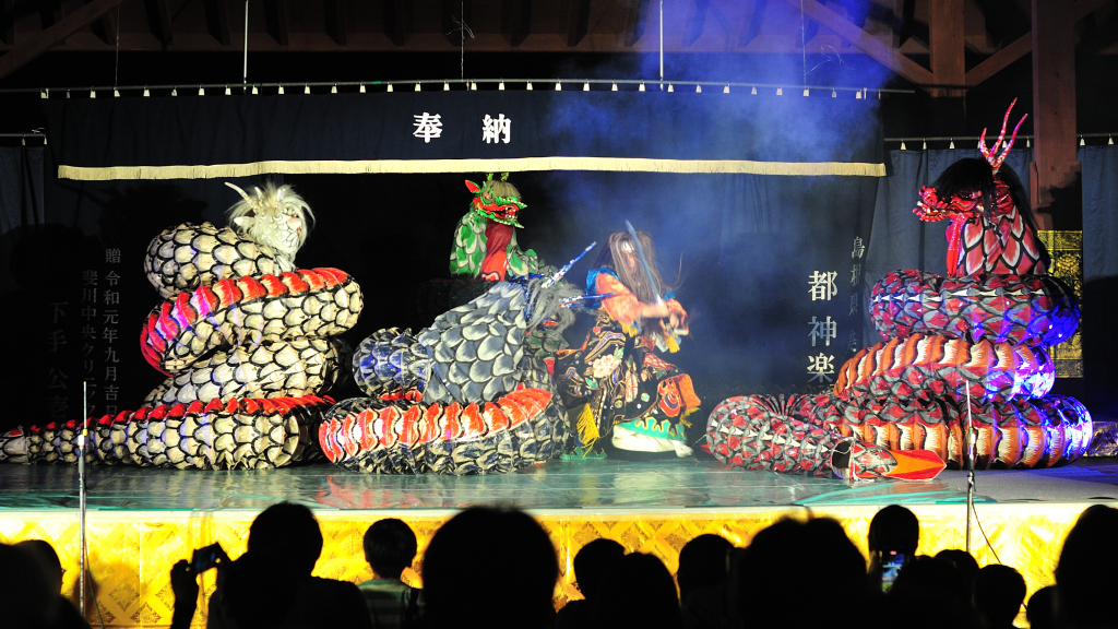 去年の秋に家族と石見神楽を見に行きました。石見神楽は神楽は日本の神話に基づいた音楽と舞踊の芸能です。