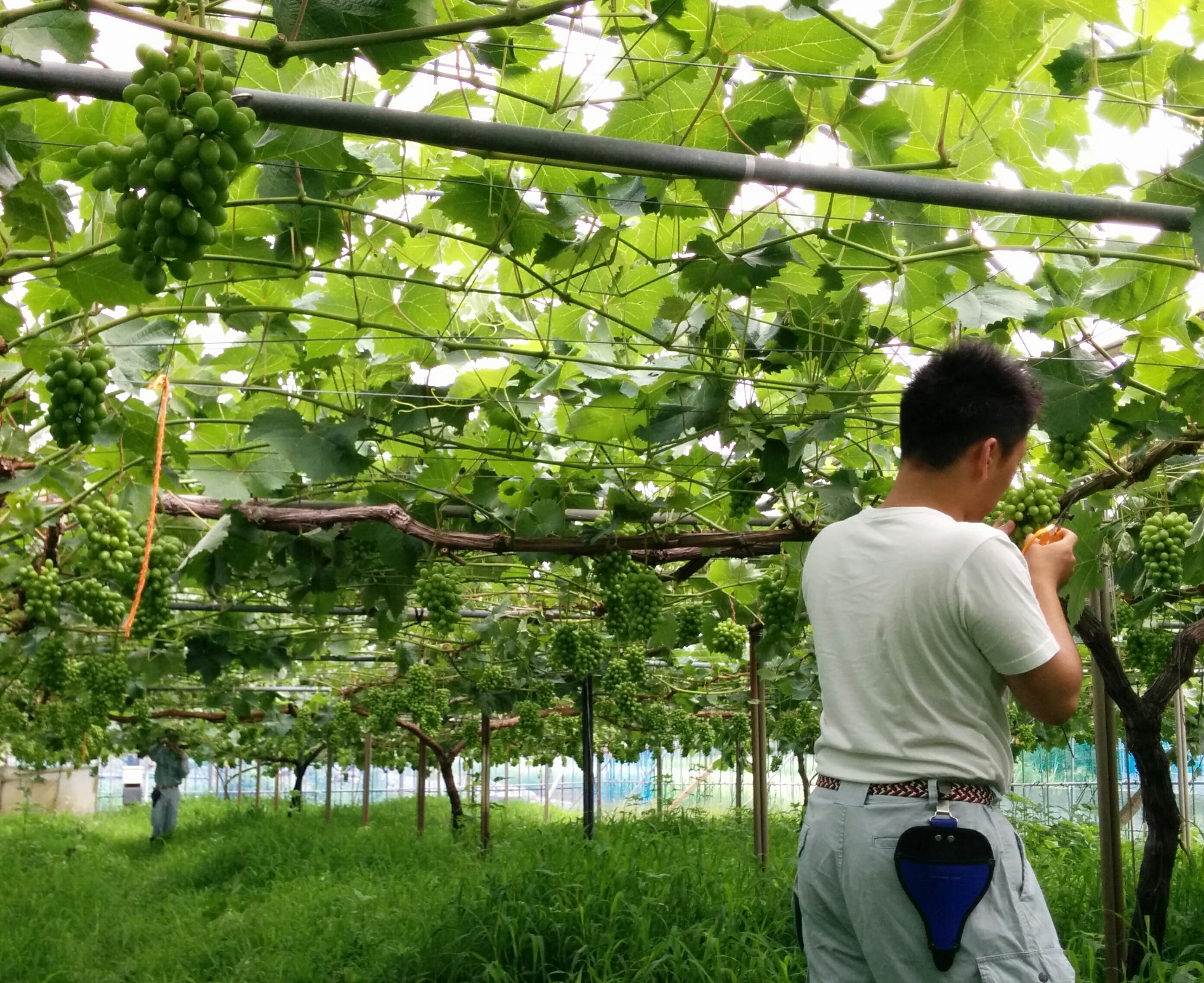 摘粒の手伝い 2016-06-232016-06-23 ~ epimiento 最近は雨よけの畑での作業が多いです。雨よけの畑とはビニールの屋根だけある畑です。特に房の粒を落とす、摘粒(てきりゅう)の作業に集中しています。摘粒は時間がかかるし、房の数が多いので一人ではできません。 前週から障がい者自立支援事業所『ぽんぽん船』の方々が畑の作業の手伝いをしてくださっています。去年は他のぶどう農家を手伝いました。平成25年から島根県の農業技術センターでぶどう栽培の作業を行っています。ぽんぽん船の方はとても丁寧にぶどう栽培の作業をされるし、一つ一つの作業を頑張っておられます。 共有: クリックして X で共有 (新しいウィンドウで開きます) X Facebook で共有するにはクリックしてください (新しいウィンドウで開きます) Facebook いいね 読み込み中…