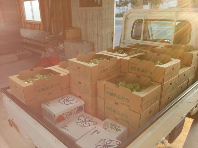 畑一枚目の収穫を終わりました 2016-08-202016-08-26 ~ epimiento 今年は天気が良かったから遅い作型の畑はいつもより早い時期に熟れました。全部の畑が重ねった。 去年まで収穫作業は一人ででした。今年はぽんぽん船さんとブドウ農家の仲間で収穫作業をしています。そのためいままでは約1.5トンのぶどうを収穫をしましたけど、まだ1トンはまだです。収穫最大日は246kgでした。熱い作業場でみんなさんは頑張っています。お疲れさまです。 島根県産シャインマスカットご注文受付中 共有: クリックして X で共有 (新しいウィンドウで開きます) X Facebook で共有するにはクリックしてください (新しいウィンドウで開きます) Facebook いいね 読み込み中…