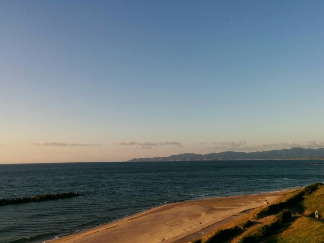 Taki, in western Izumo city is by the Sea of Japan. In summer people come to swim and surf. It is a place where the sea and the sky blend in space.