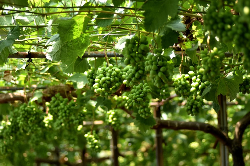 加温栽培の畑は水回りが始まりました、ぶどうの色が変わります、粒が柔らかくなります。ぶどうは実になってから約50日間です。収穫までは約後50日間です。