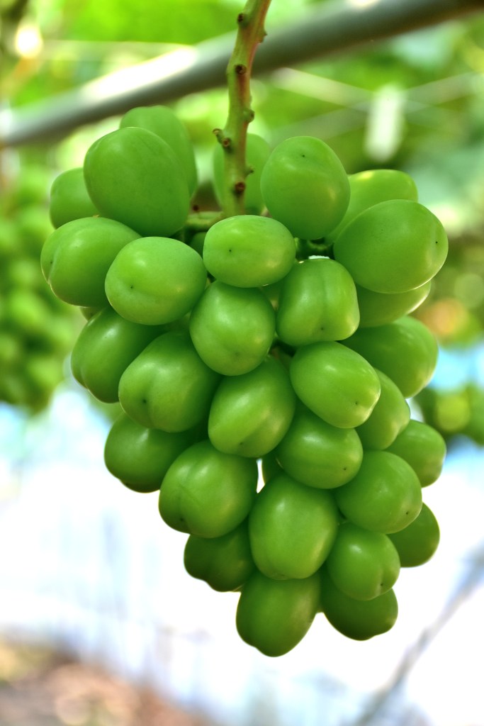 シャインマスカットの二番目の畑はまた摘粒を終わってない、大変です。 別のハウスの作業をしている間に 果実がだいぶん大きなりました。摘粒が時間が掛かります。