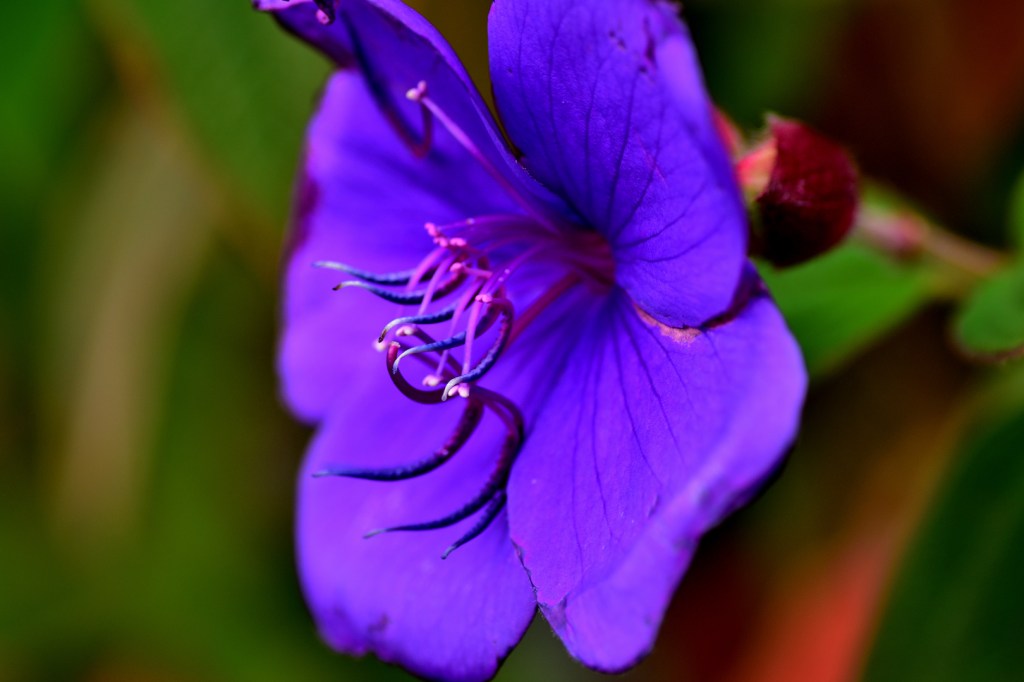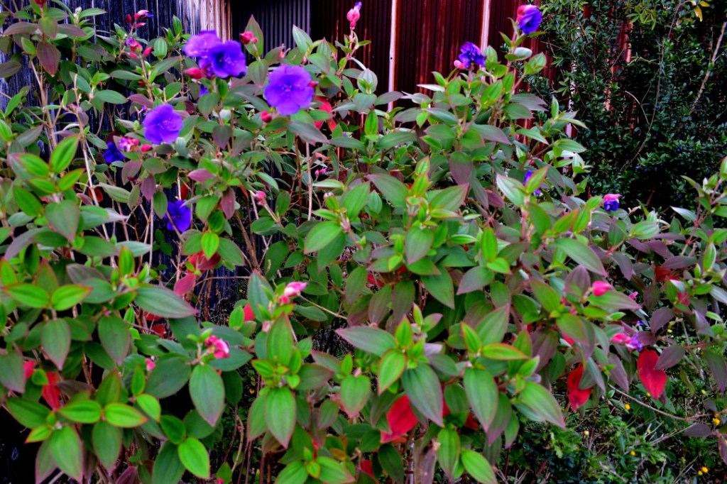 自家にある花はスペイン語では花の名前はsiete cueros です、英語では tibouchina です。日本にある花はシコンノボタンです。シコンノボタンは中南米の花の仲間です。とても美しい花です。