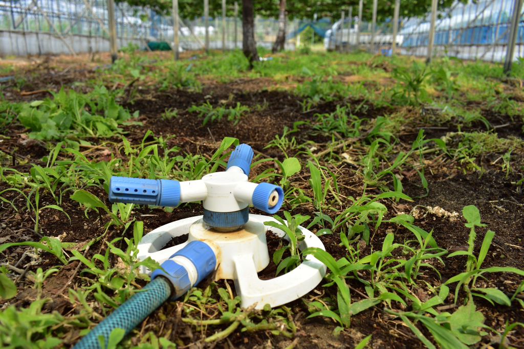 今年は畑かんの水がごみが多いですからスプリンクラーが詰まってホースがは外れます。数日前にスプリンクラーの一部を外しました。