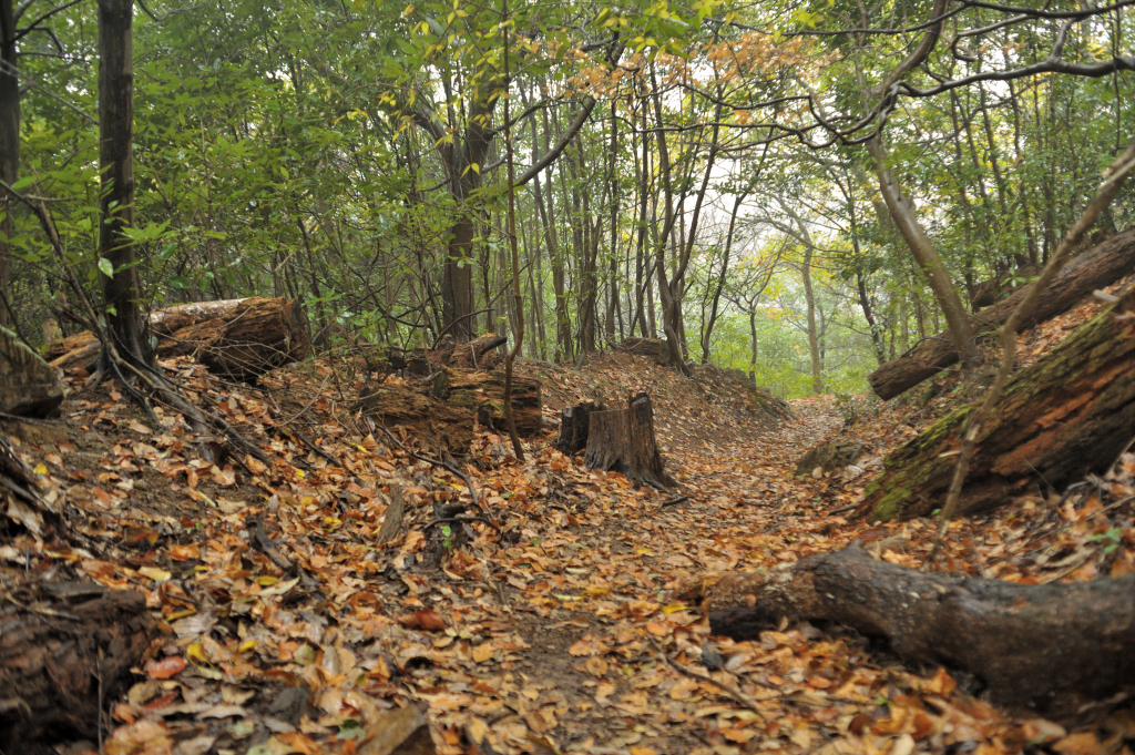 I waited for a while in a small hut. While I walked down there was a light rain all the way. The forest was beautiful.