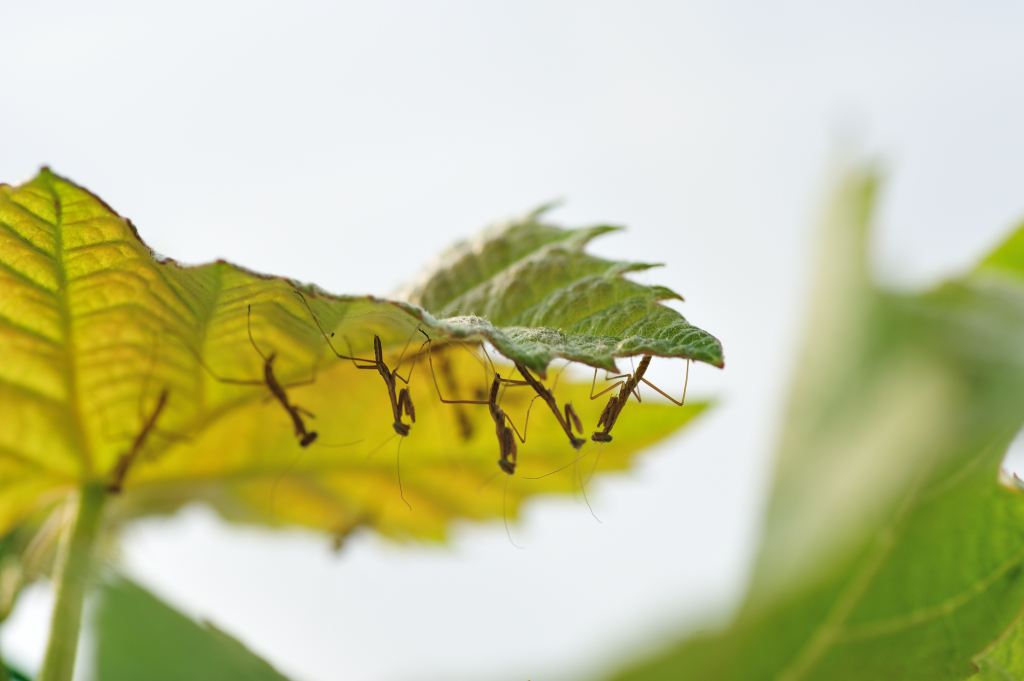 加温栽培栽培のシャインマスカットは成長はバラバラです。この前は赤ちゃんカマキリがいました。