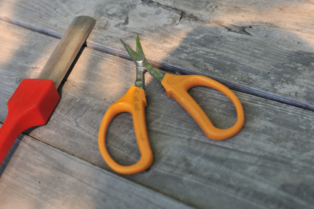 最近は摘粒をしていますが、ハサミがよく切れるのは大事です。ハサミの先端を使って粒の落とす。砥石よりヤスリのほうが便利です。