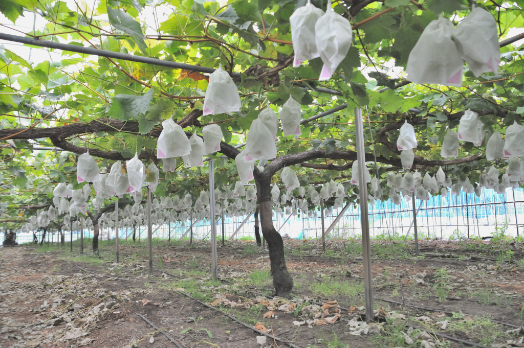 数日前に袋掛けしました。袋掛けの専用アプロンがあることを知ってるけれどもここでは手に入りにくいです。なんでアプロンを自分で作るか作ってもらうかを僕が考えませんでした。それから春にブドウ農家の友達にアプロンを頼みました。友達はとても上手です。