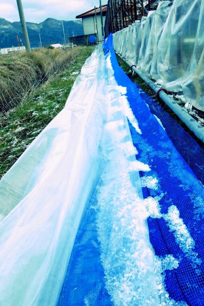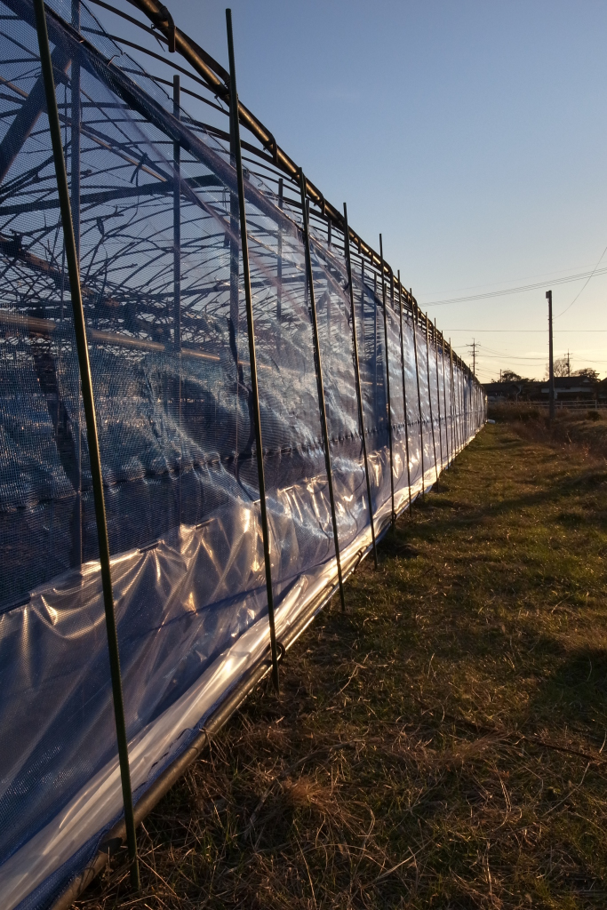 シャインマスカットのハウスの修理の中ではサイドの巻き上げ付けもありました。サイドの巻き上げはハウスの換気にとても便利です。自分で巻き上げのビニールを付けることになりましたが、作製方法を知りませんでした。ブドウ農家の仲間が自分のハウスの巻き上げを見せて、ビニールの付け方も教えてくれました。なので自分でやるしかありませんでした。とてもいいこともありました。近くに同じ作業をしているハウスがあったのでそれを見て参考になりました。