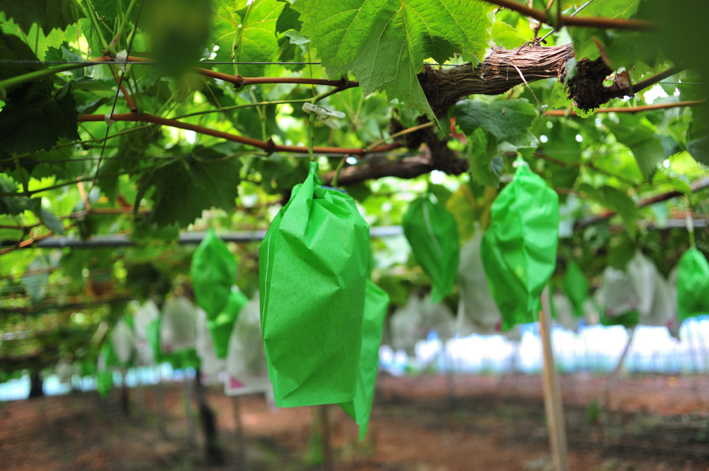 今年は天気が良いです。加温栽培のシャインマスカットは順調です、収穫の予定は7月下旬からです。