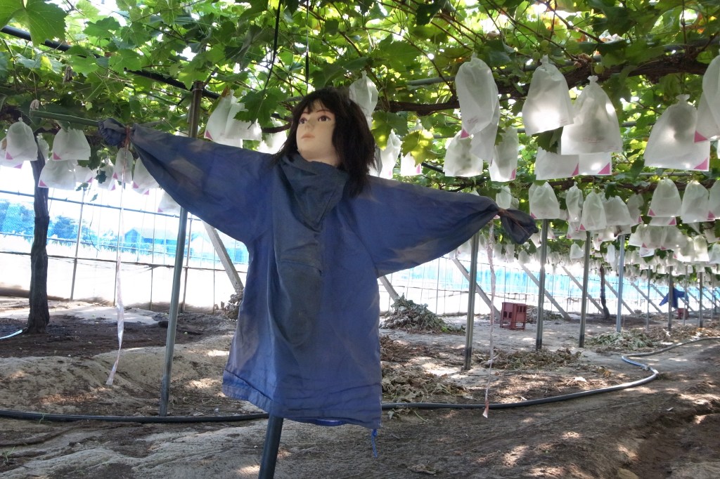 毎年、シャインマスカットの畑の土壌検査をします。今年は主に苦土石灰を施しました。灌水範囲内に苦土石灰を撒いてから耕運機で軽く耕します。たまに2回目のぶどうができます。種無し処理をしないのでほぼどの房も種があります。