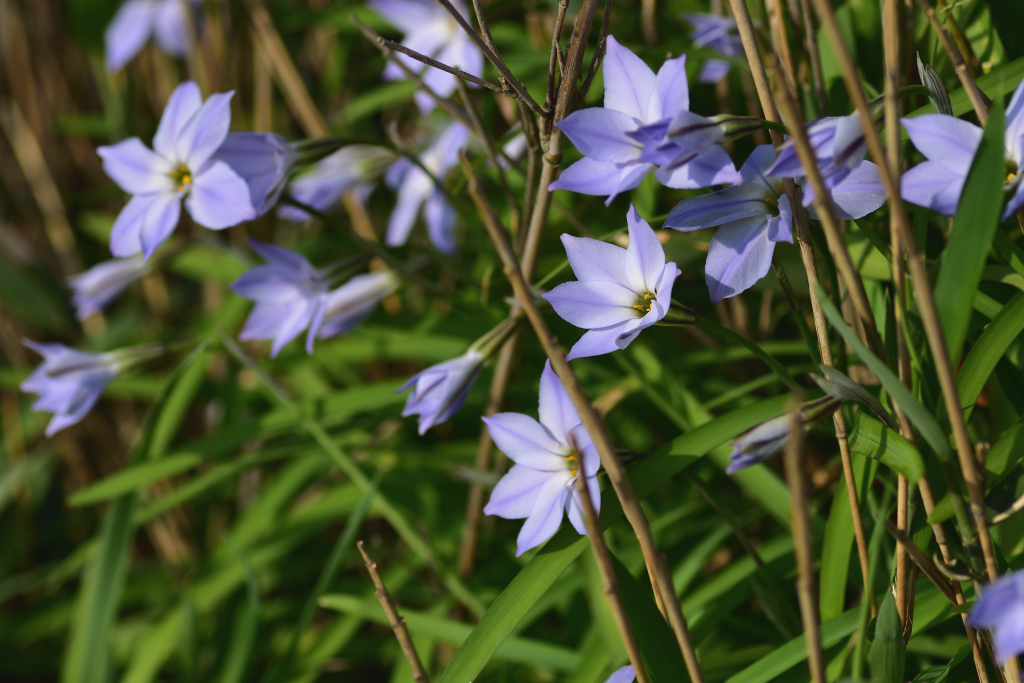 春が進むと草と花が増えます。雨よけ栽培のシャインマスカットのハウスの近くに小さい花が咲いています。