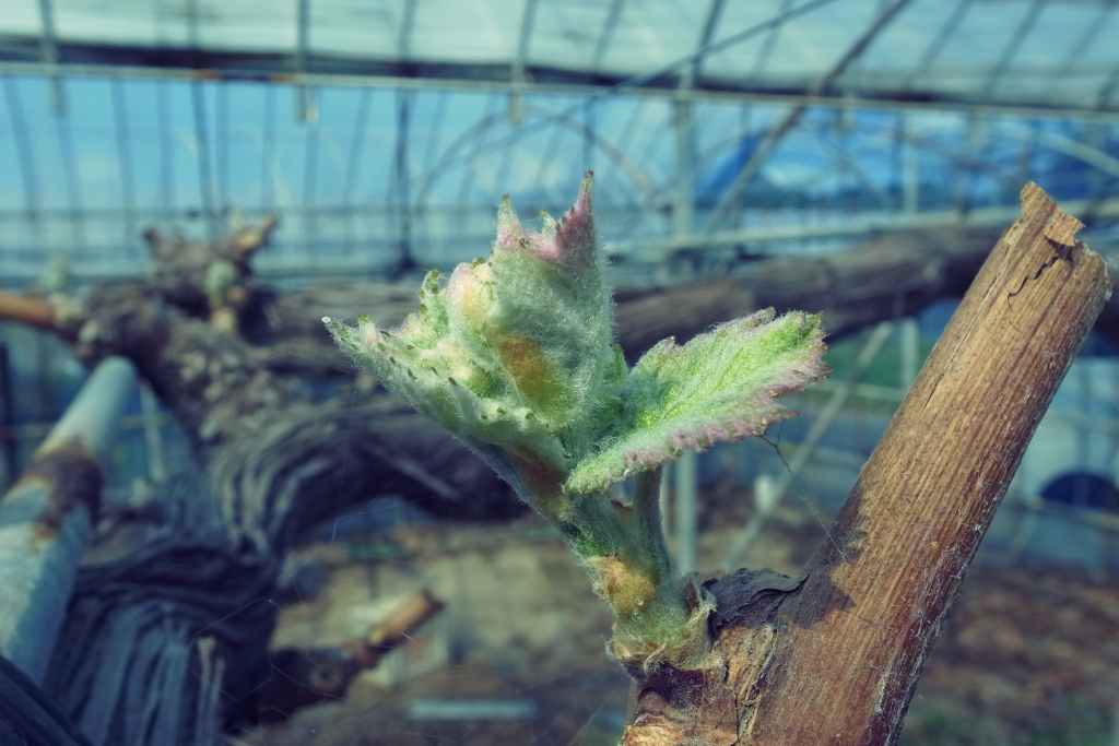 今年は天気が良かったで雨よけ栽培シャインマスカットの芽が早かったです。