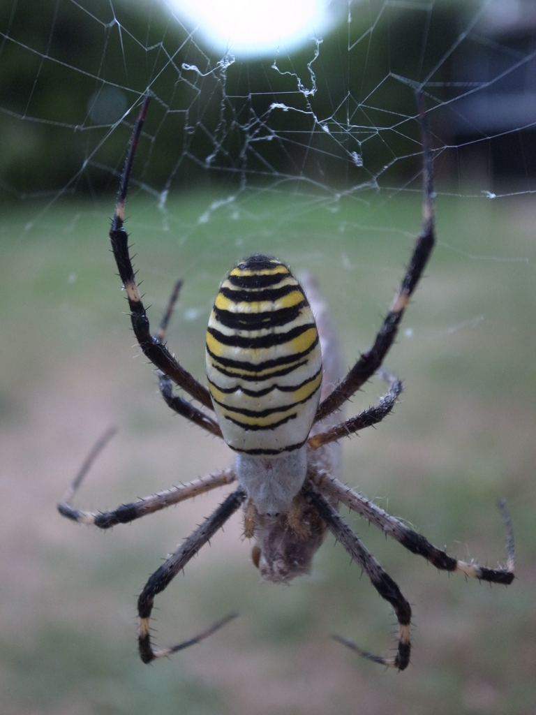 今日も長い日でした。家から出たときにクモを見ました。クモが虫を捕まった。