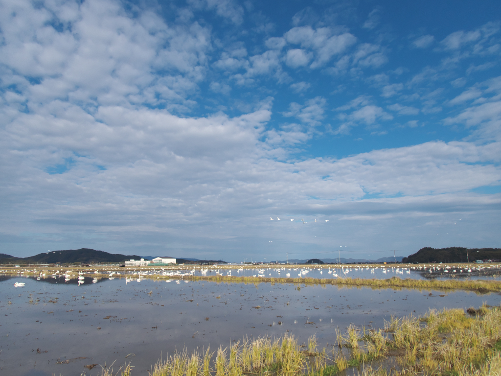 最近は冬鳥が沢山がいます。ハクチョウ、マガン、カモ、色んな野鳥が来ました。今はシャインマスカットの剪定をしていま。週末に息子と一緒にバードウォッチングに行きました。安来市でハクチョウを見ました。