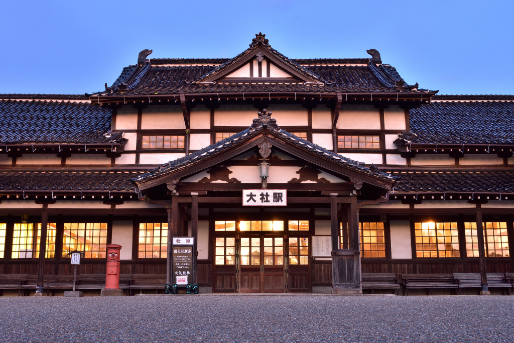 5年間後令和8年4月15日に旧大社駅はリニューアルオープンでした。とても綺麗でした。ぶどう畑は近いからよく昼休みに行きました。