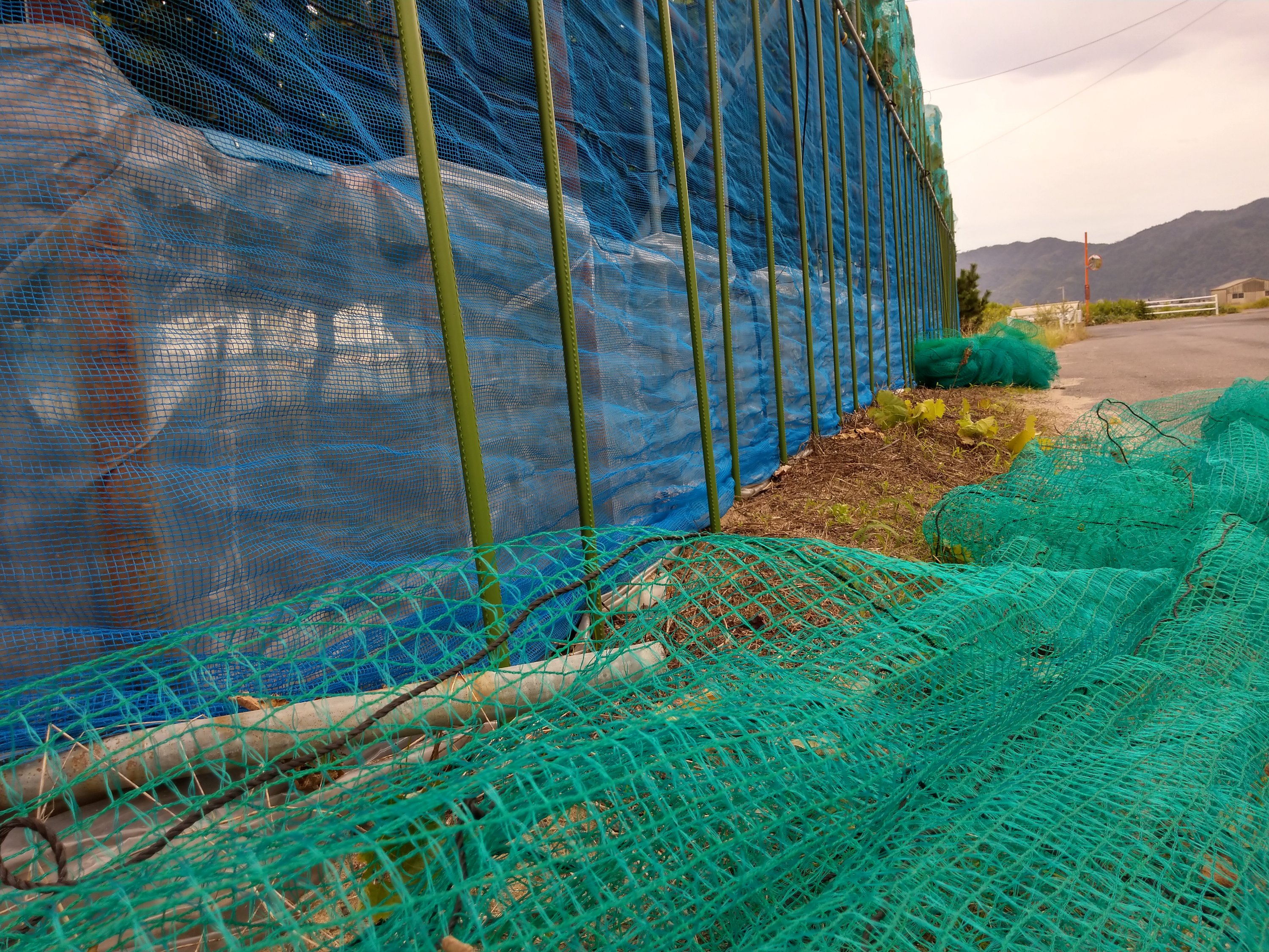 これからの作業はハウスの事、防除と土壌改良です。防除の前は谷の網を片付け、それから谷を閉じます。今日は加温栽培のハウスの網を方付けました。週末は雨と台風が来る、来週の良い天気の日に防除をしたいんです。