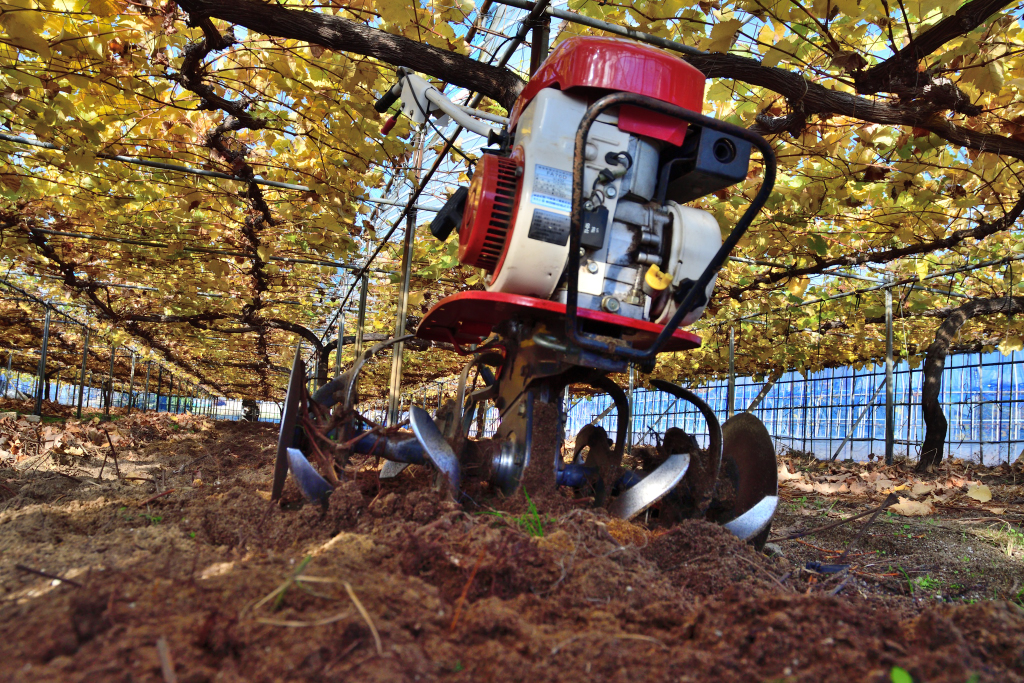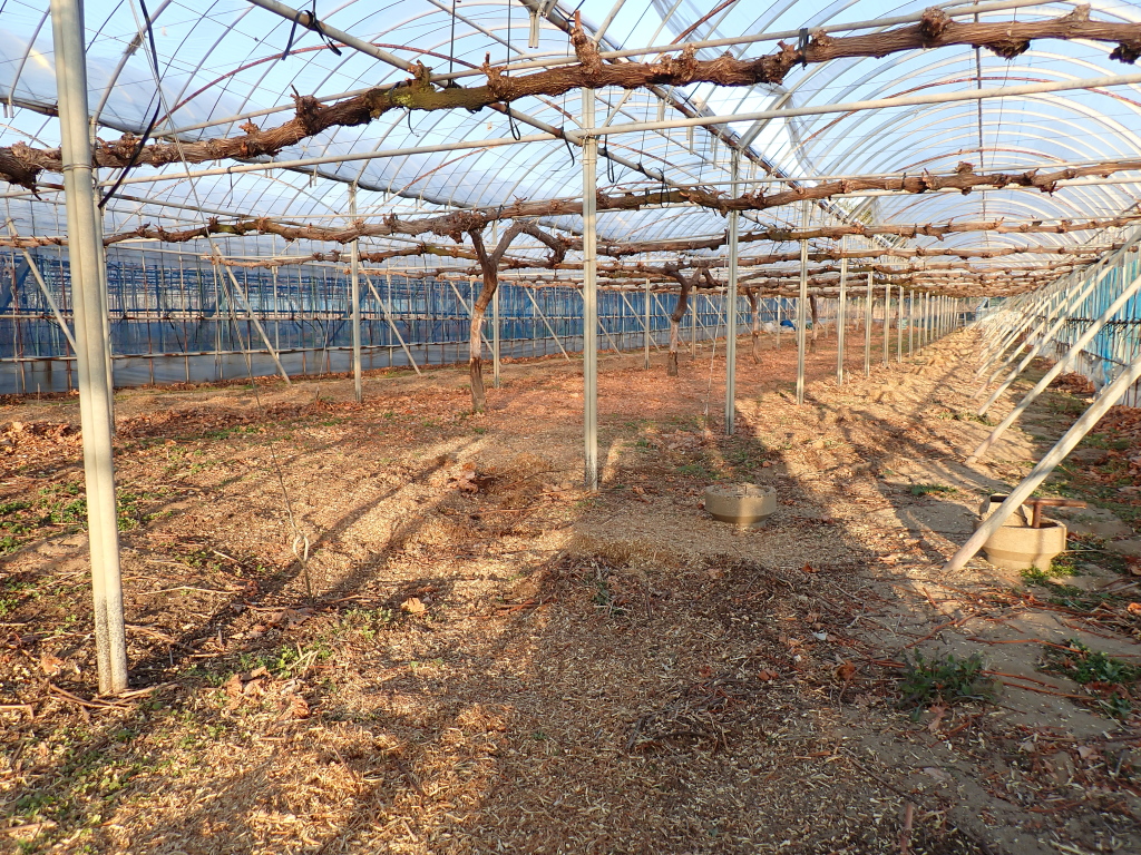去年12月上旬にシャインマスカットの早い作型の土壌改良をしました。剪定をしてから2月下旬に雨よけ栽培のシャインマスカットの畑の土壌改良をしました。今回は苦土石灰だけにしました。堆肥は次にします。シャインマスカットにはカルシウムはとても大事です。家の薪ストーブの灰も撒きます。