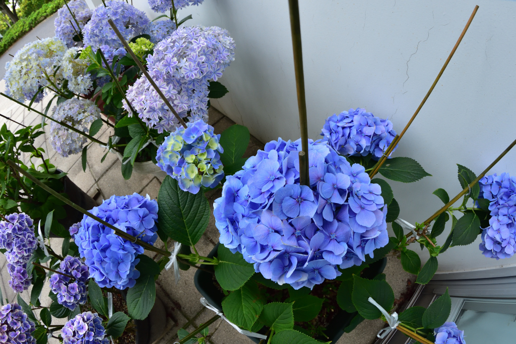 作業は忙しいです。アジサイが咲いています。